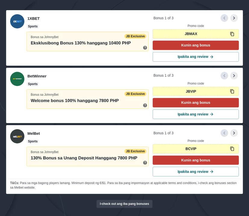Ang betting site na may lowest deposit sa Pilipinas ay ang 1XBET, MelBet, at BetWinner online gaming apps.